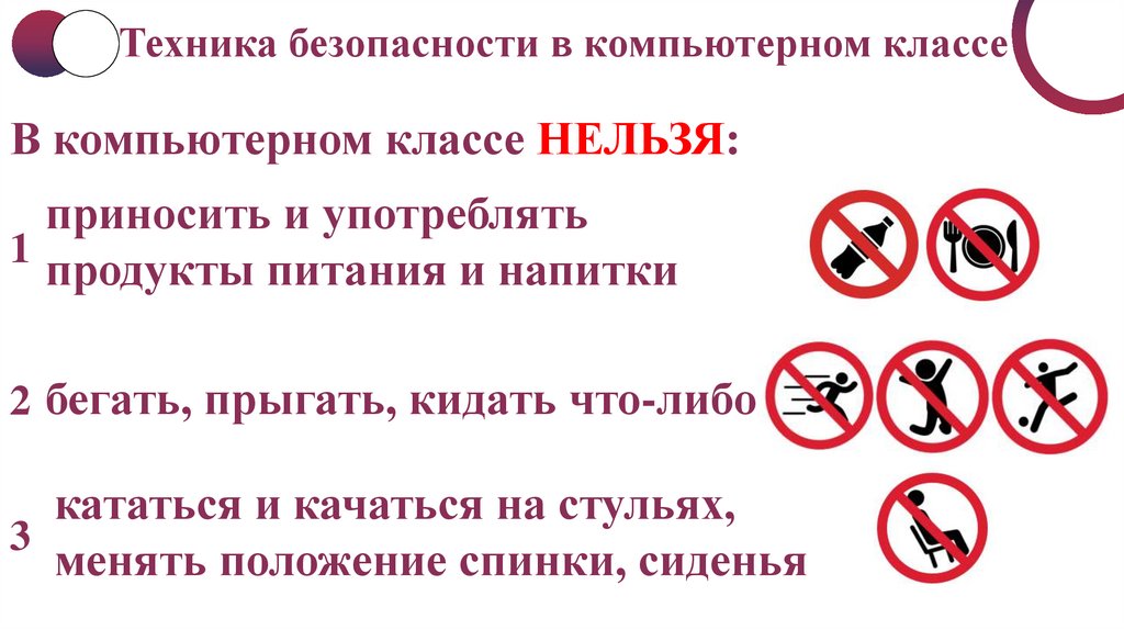 Техника безопасности в компьютерном классеВ компьютерном классе НЕЛЬЗЯ: