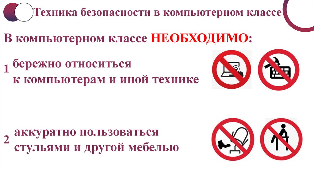 Техника безопасности в компьютерном классеВ компьютерном классе НЕОБХОДИМО: