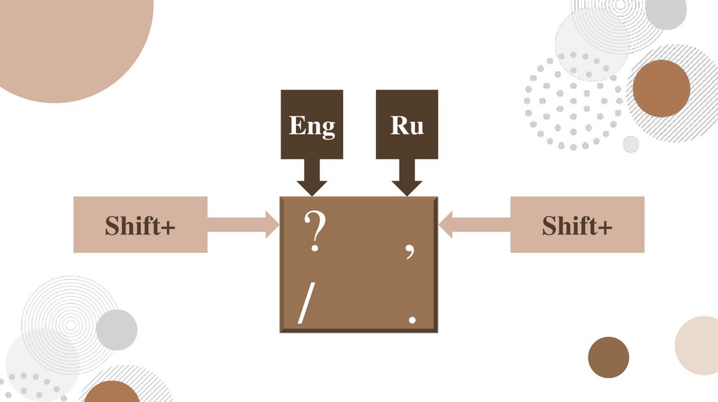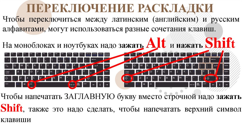 ПЕРЕКЛЮЧЕНИЕ РАСКЛАДКИЧтобы переключиться между латинским (английским) и русским