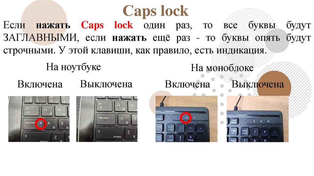 Сaps lockЕсли нажать Caps lock один раз, то все буквы будут
