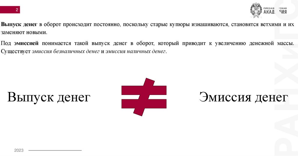 2Выпуск денег в оборот происходит постоянно, поскольку старые купюры изнашиваются, становятся ветхими и их