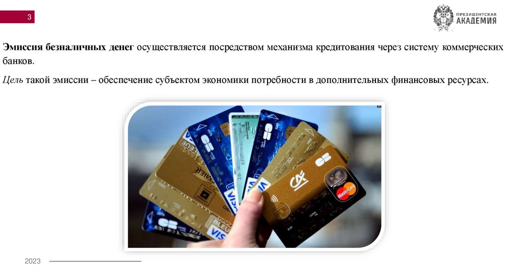 3Эмиссия безналичных денег осуществляется посредством механизма кредитования через систему коммерческих