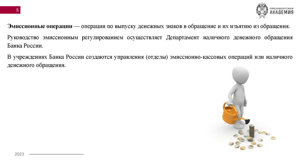 5Эмиссионные операции — операции по выпуску денежных знаков в обращение и их изъятию из обращения.