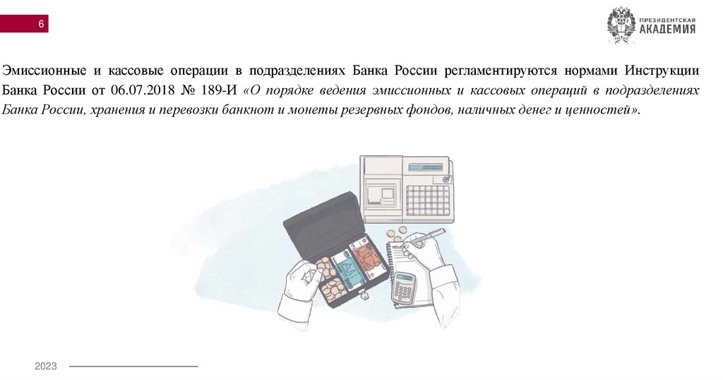 6Эмиссионные и кассовые операции в подразделениях Банка России регламентируются нормами Инструкции