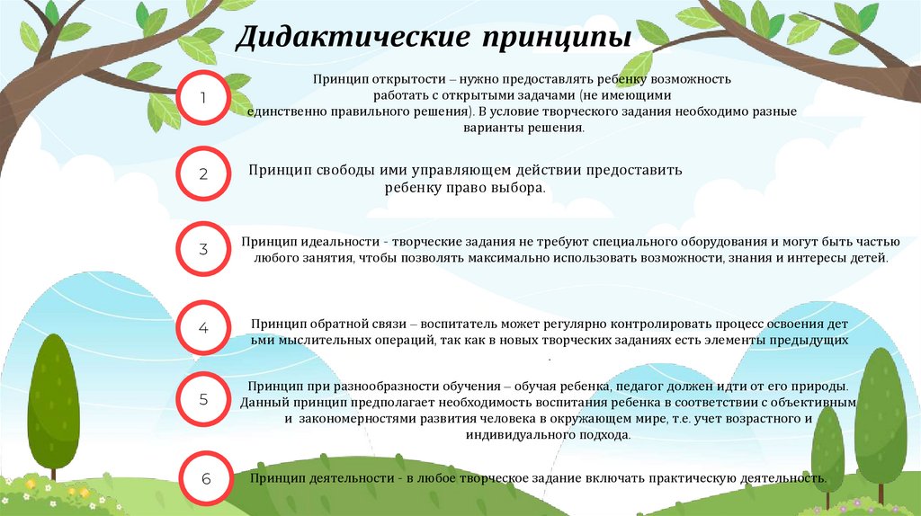 Принцип деятельности - в любое творческое задание включать практическую деятельность.