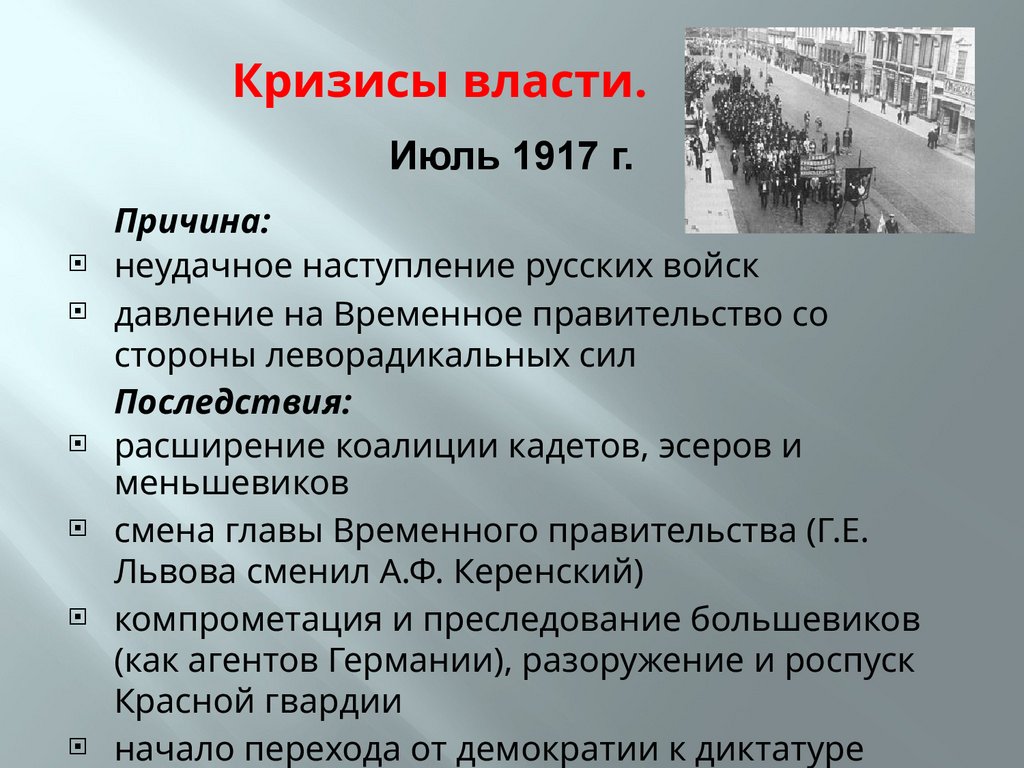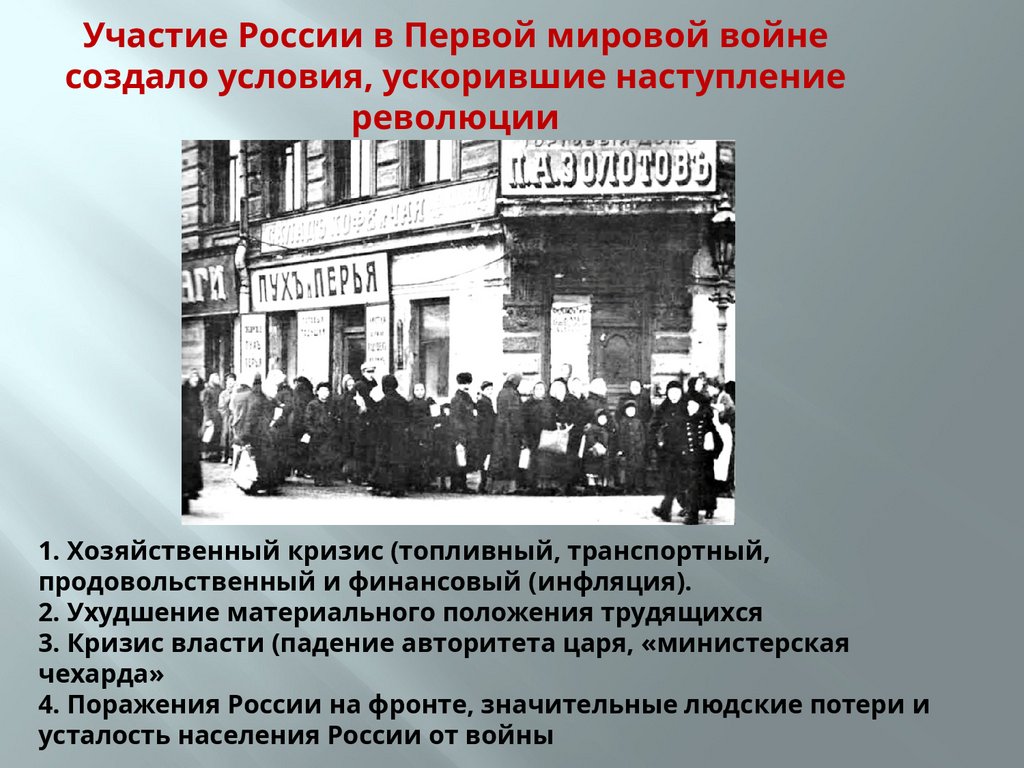 Частая сменяемость министров, права –центрическая дума, распутинский период привел к катастрофическому