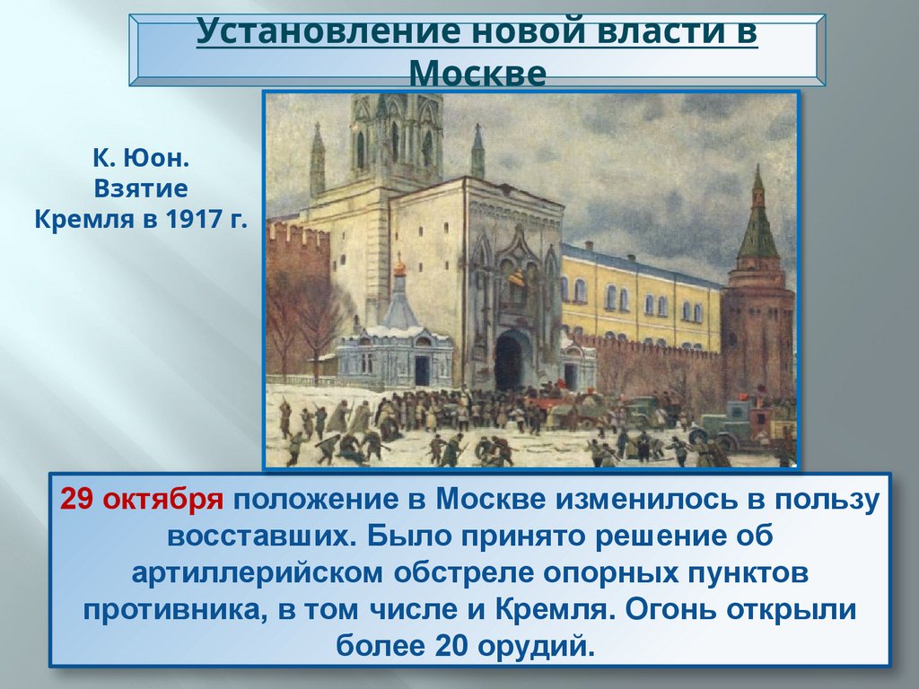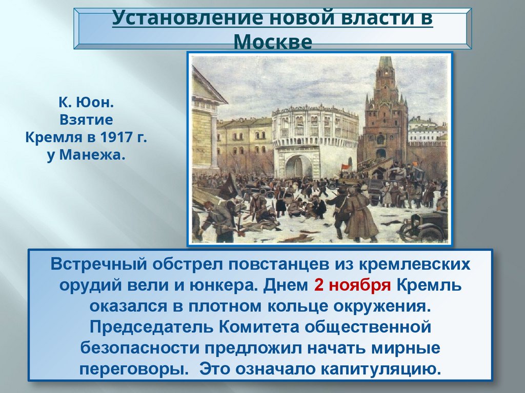орудий вели и юнкера. Днем 2 ноября Кремль
