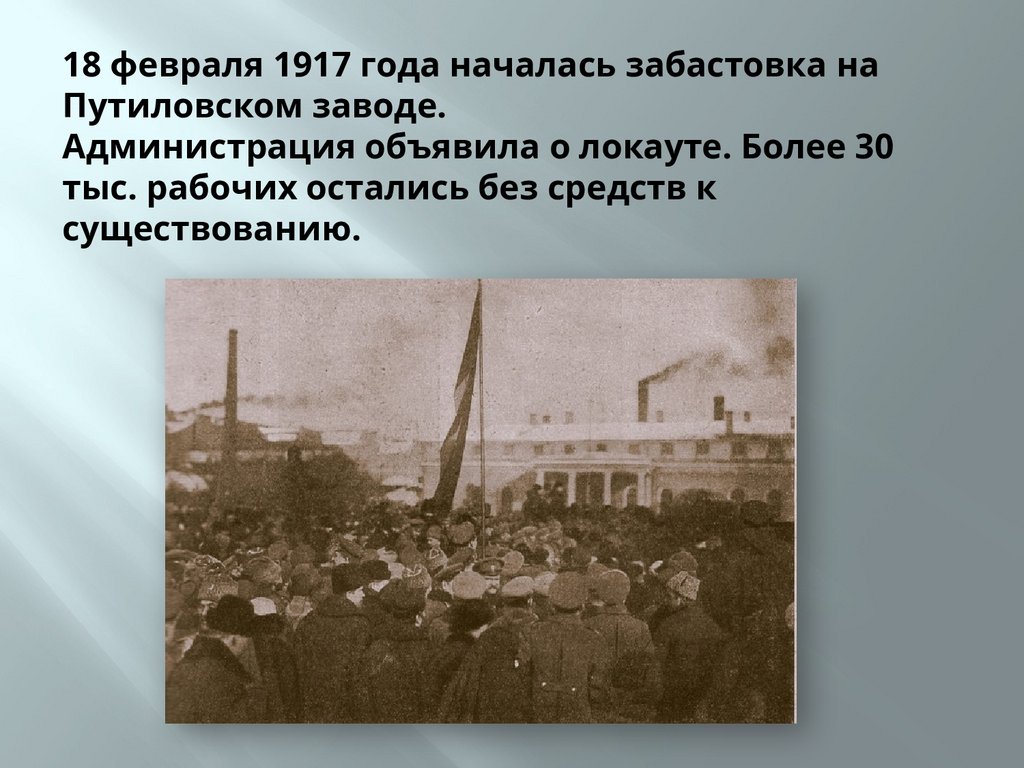 18 февраля 1917 года началась забастовка наПутиловском заводе.