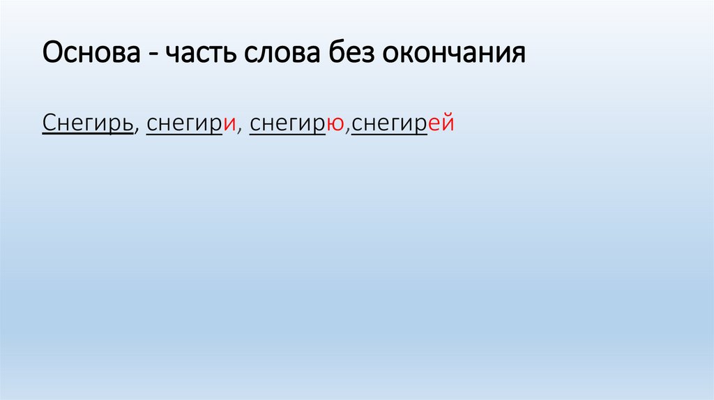 Основа - часть слова без окончанияСнегирь, снегири, снегирю,снегирей