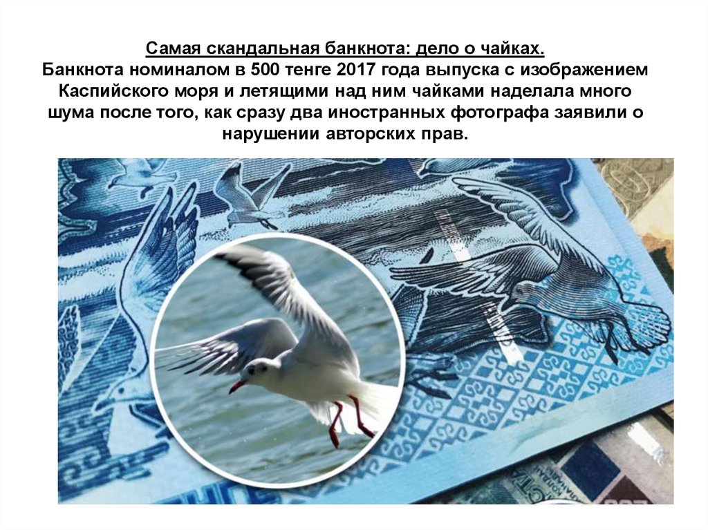 Самая скандальная банкнота: дело о чайках.Банкнота номиналом в 500 тенге 2017 года выпуска с изображением
