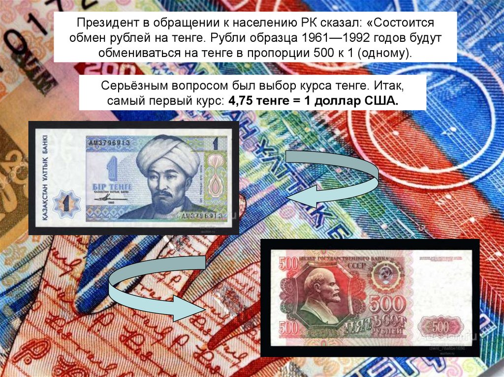 Президент в обращении к населению РК сказал: «Состоитсяобмен рублей на тенге. Рубли образца 1961—1992 годов будут