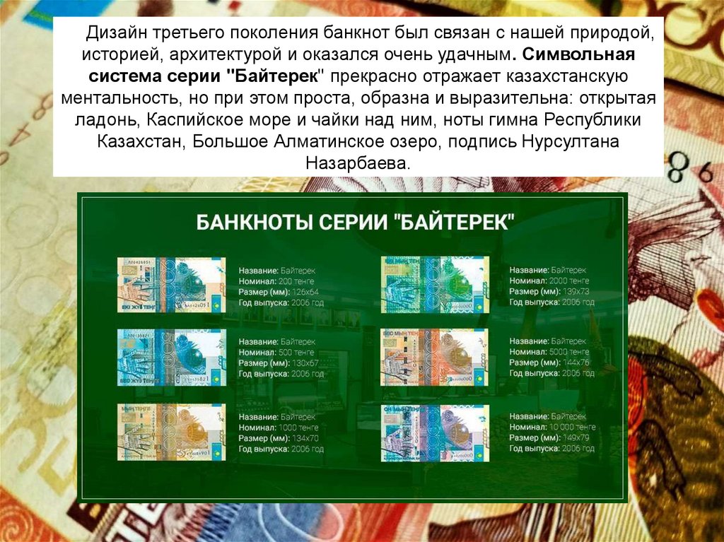 Дизайн третьего поколения банкнот был связан с нашей природой,историей, архитектурой и оказался очень удачным. Символьная