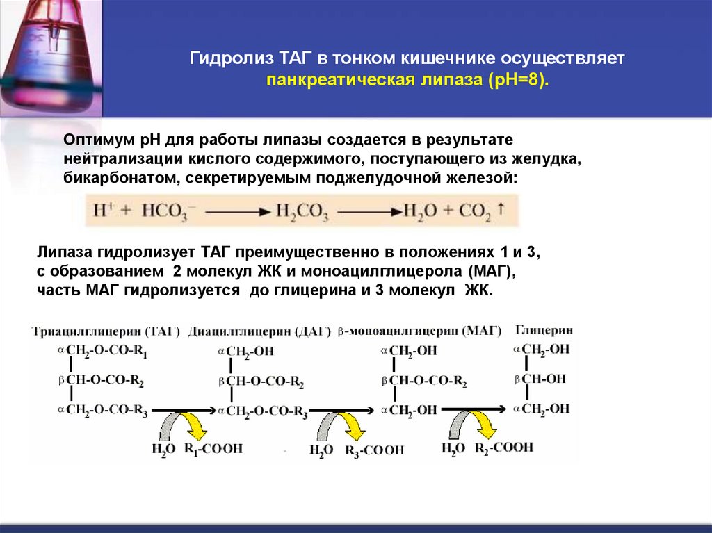 процесс гидролиза жиров происходит под действием панкреатической липазы