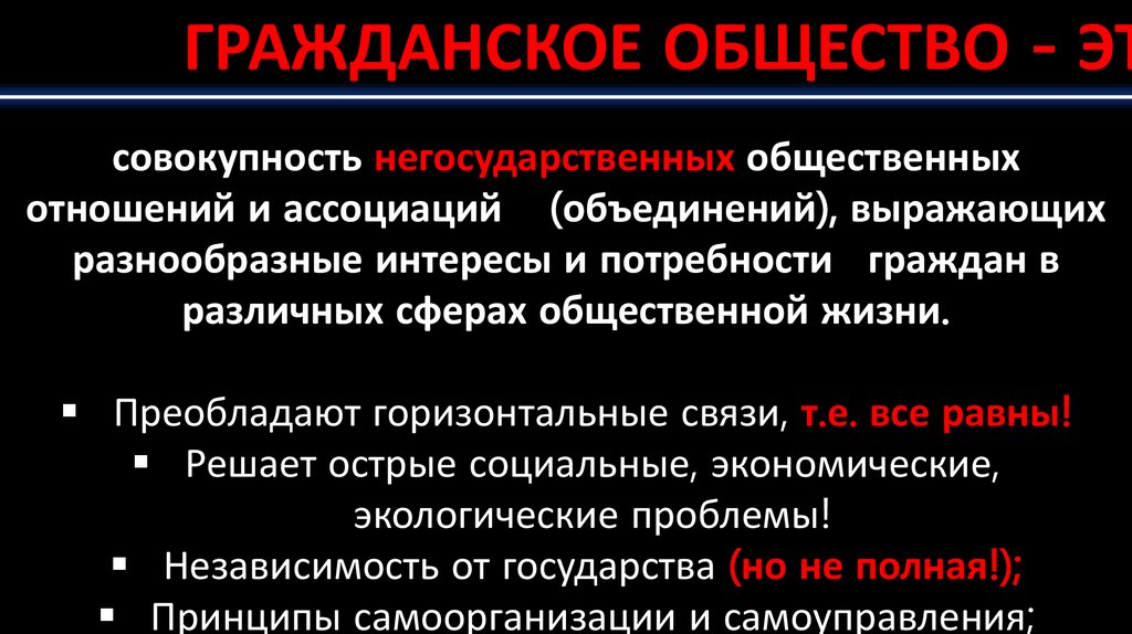 ГРАЖДАНСКОЕ ОБЩЕСТВО - ЭТсовокупность негосударственных общественных