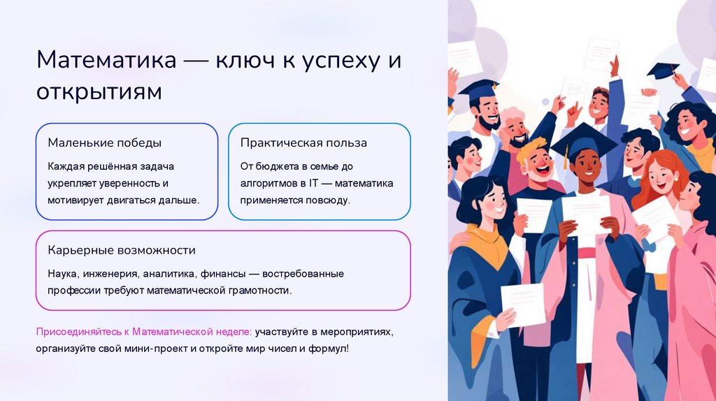 Каждое мероприятие несёт образовательную цель: сделать математику близкой и ощутимой.
