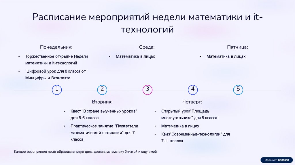 Расписание мероприятий недели математики и itтехнологийПонедельник: