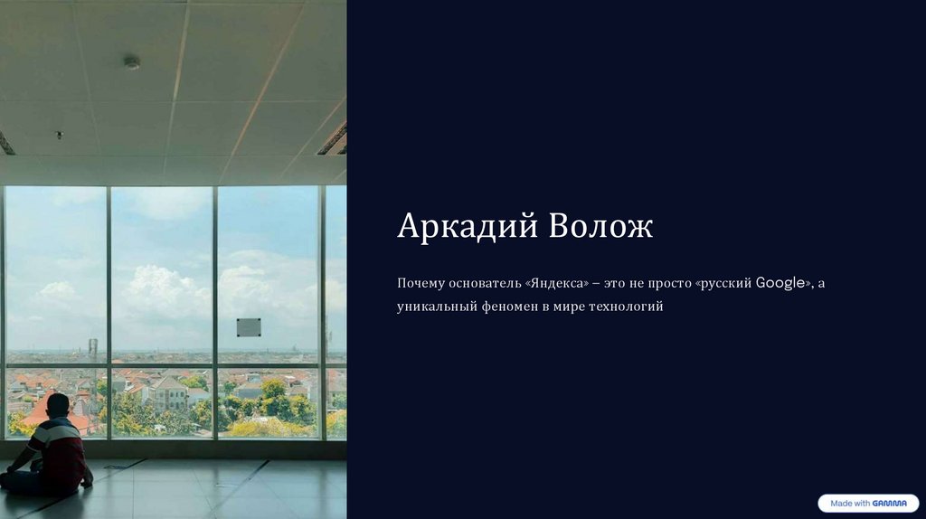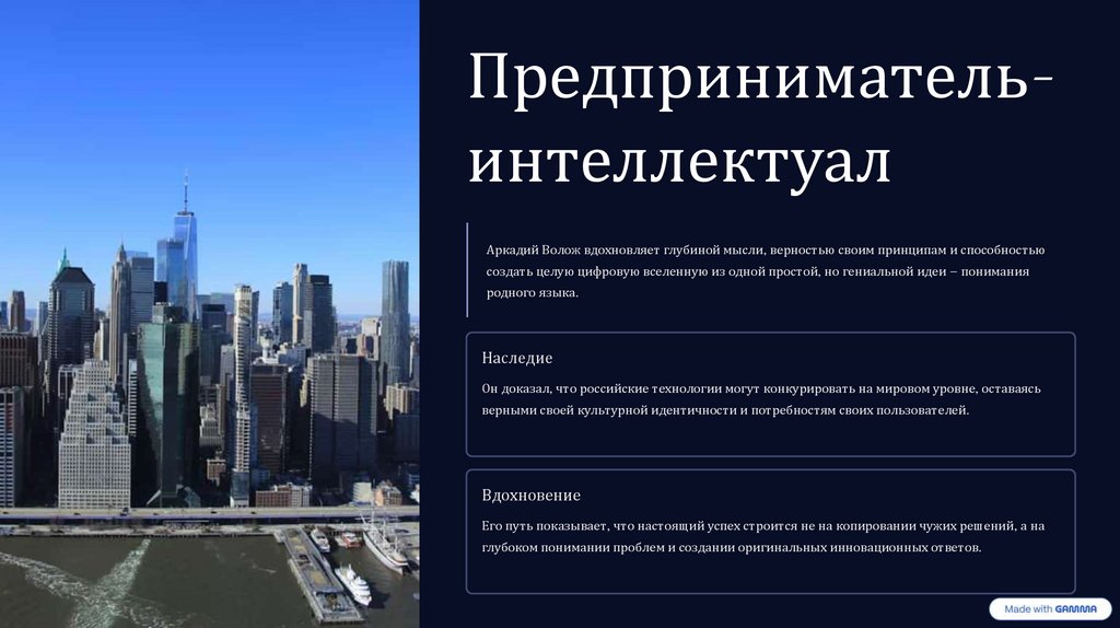 ПредпринимательинтеллектуалАркадий Волож вдохновляет глубиной мысли, верностью своим принципам и способностью