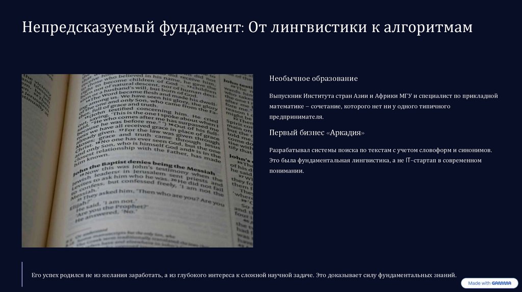 Непредсказуемый фундамент: От лингвистики к алгоритмамНеобычное образование