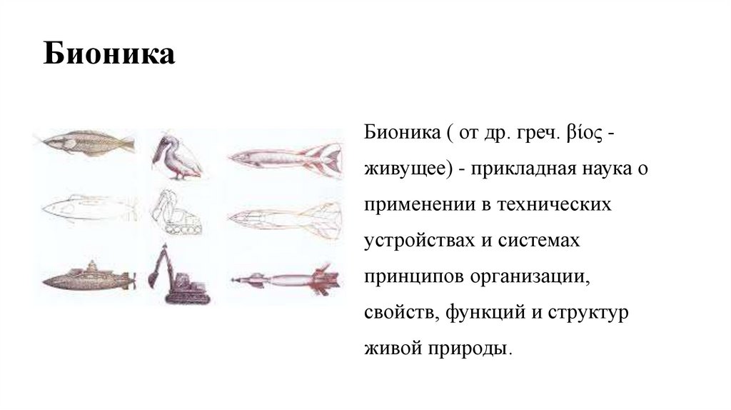 БионикаБионика ( от др. греч. βίος живущее) - прикладная наука о