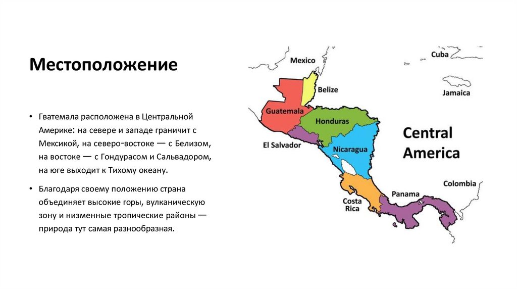 • Гватемала — президентская республика. По Конституции 1985 года главой государства и