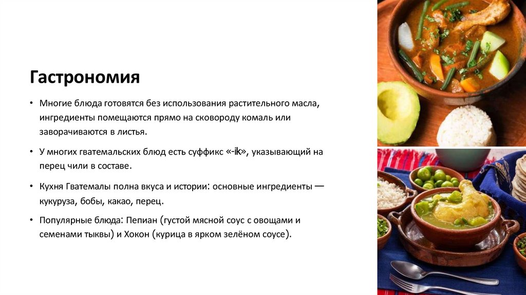 • У многих гватемальских блюд есть суффикс «-ik», указывающий на