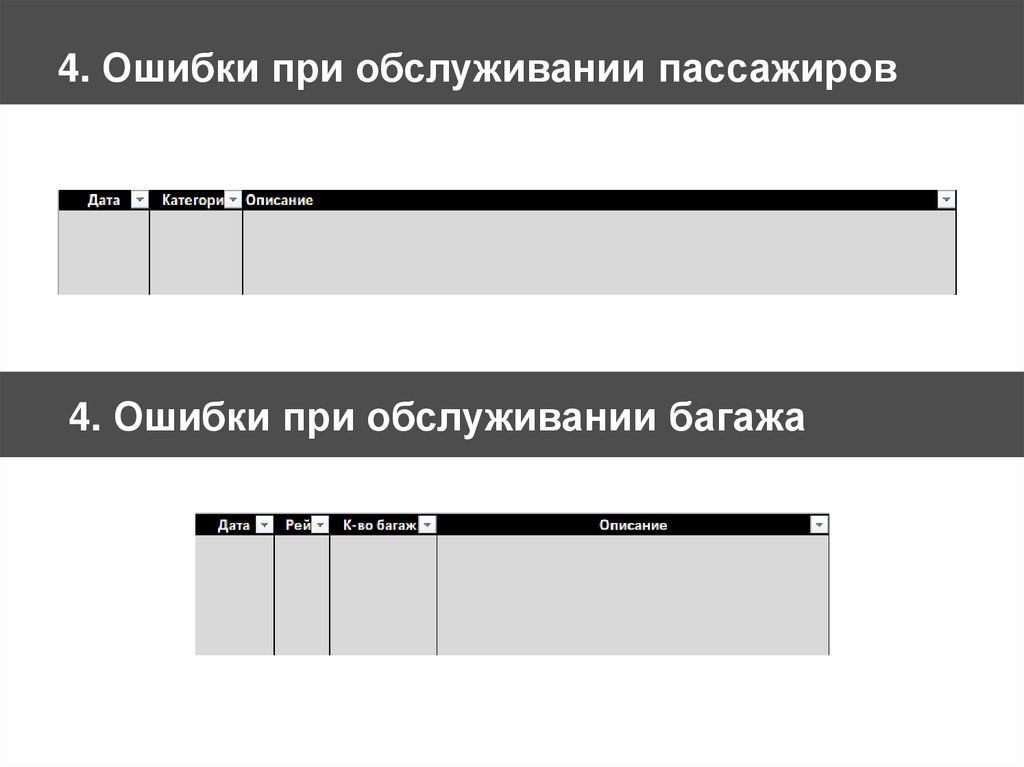 4. Ошибки при обслуживании пассажиров4. Ошибки при обслуживании багажа