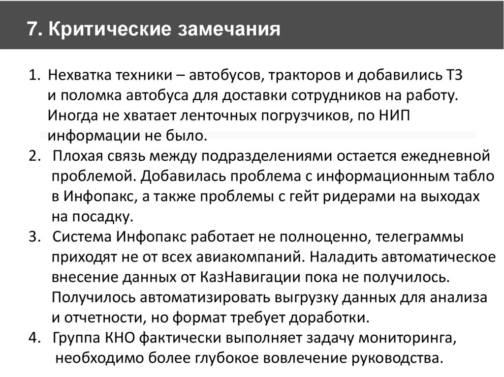 7. Критические замечания1. Нехватка техники – автобусов, тракторов и добавились ТЗ