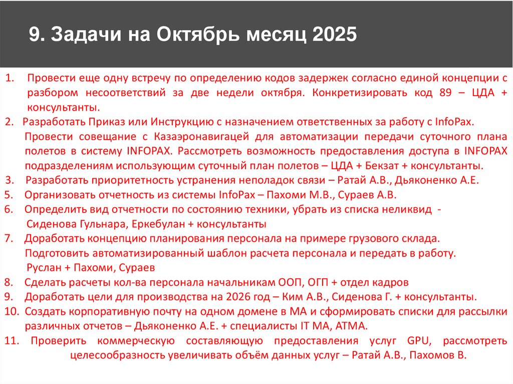 9. Доработать цели для производства на 2026 год – Ким А.В., Сиденова Г. + консультанты.