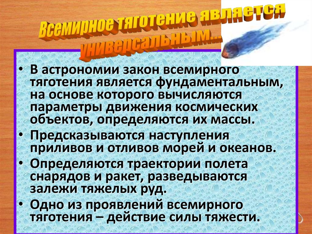 • В астрономии закон всемирноготяготения является фундаментальным,