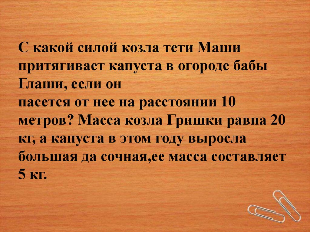 метров? Масса козла Гришки равна 20