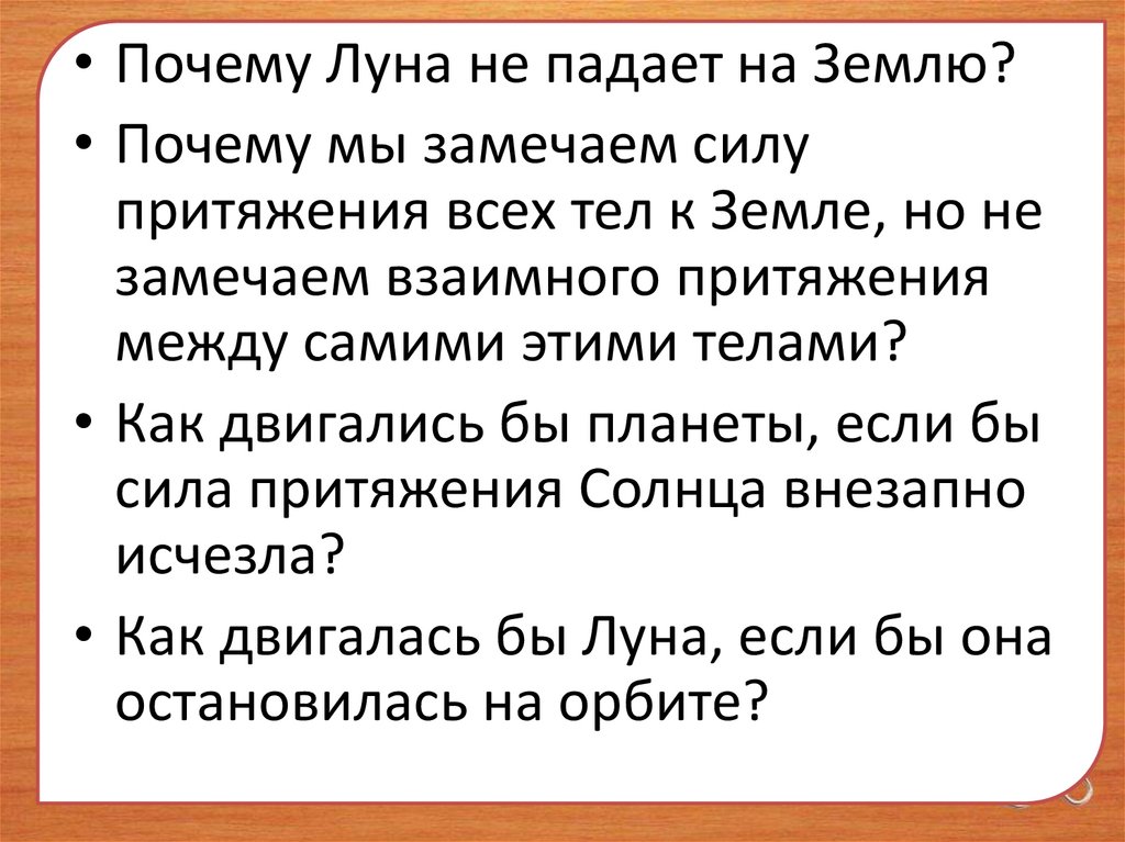 • Почему Луна не падает на Землю?• Почему мы замечаем силу
