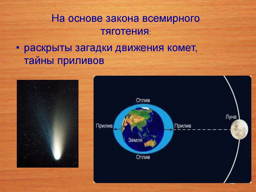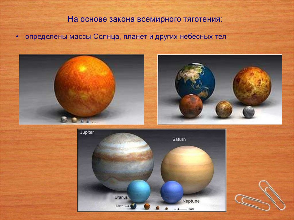 На основе закона всемирного тяготения:• определены массы Солнца, планет и других небесных тел
