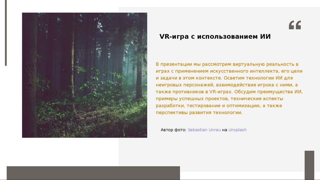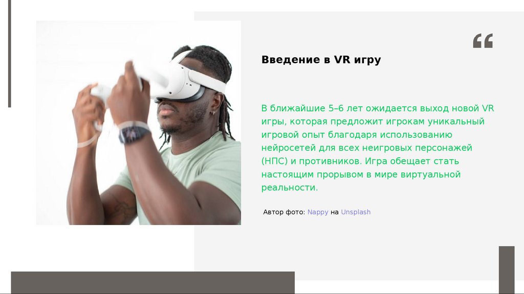 VR-игра с использованием ИИВ презентации мы рассмотрим виртуальную реальность в