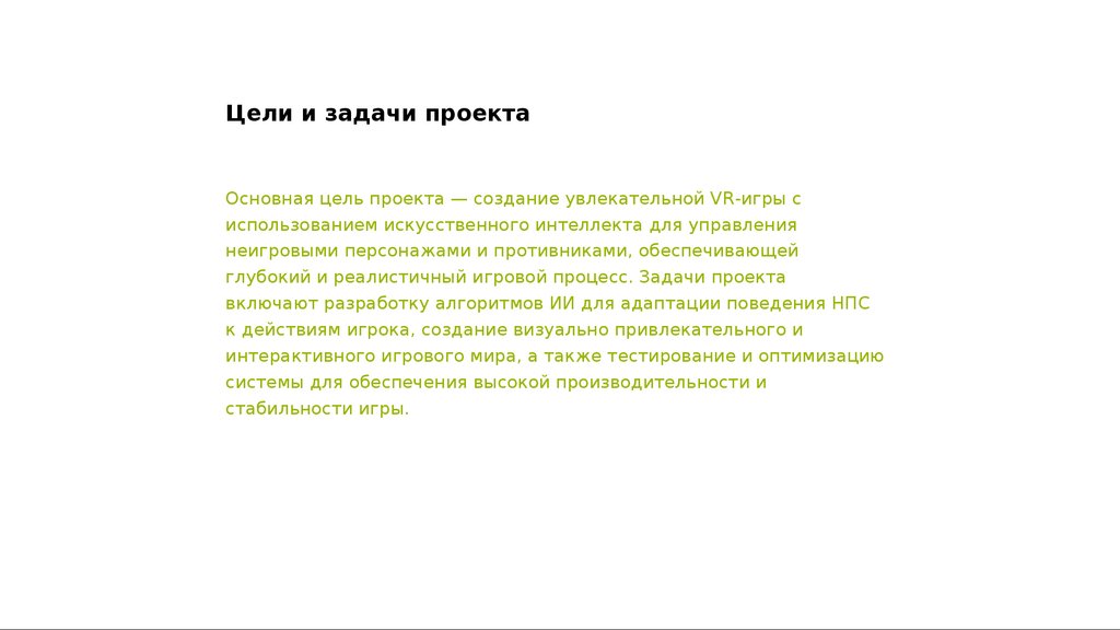 Цели и задачи проектаОсновная цель проекта — создание увлекательной VR-игры с