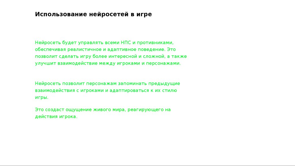 Использование нейросетей в игреНейросеть будет управлять всеми НПС и противниками,