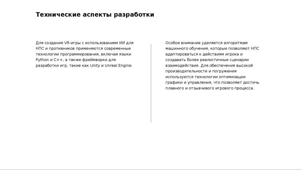 Технические аспекты разработкиДля создания VR-игры с использованием ИИ для