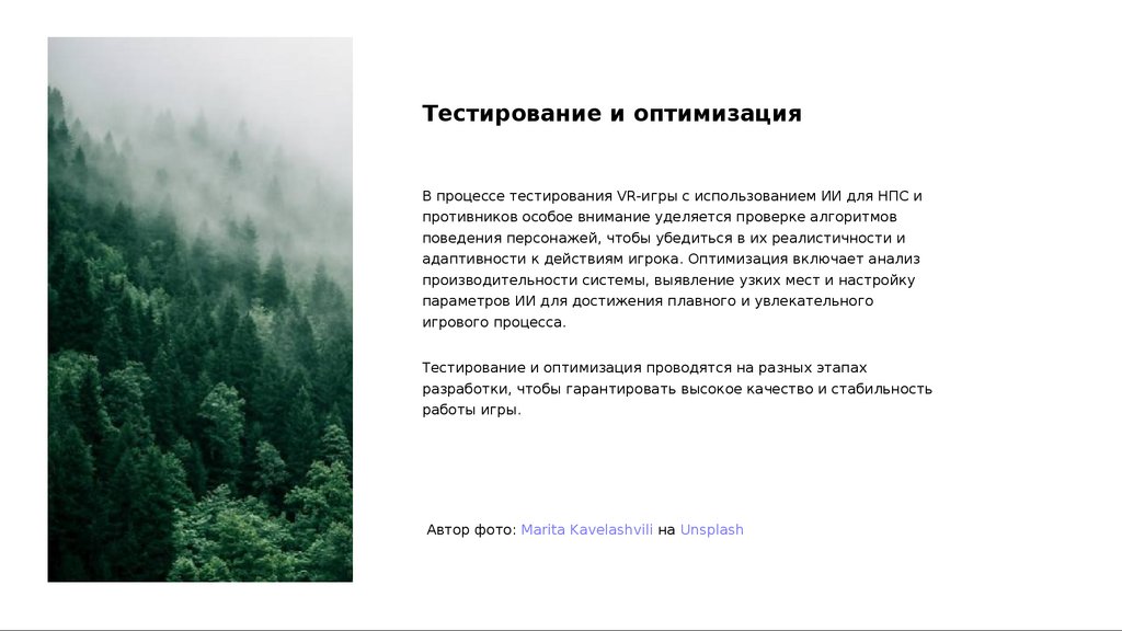 Тестирование и оптимизацияВ процессе тестирования VR-игры с использованием ИИ для НПС и