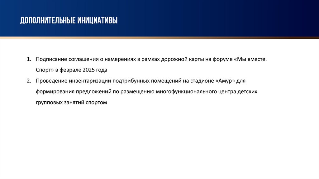 2. Проведение инвентаризации подтрибунных помещений на стадионе «Амур» для