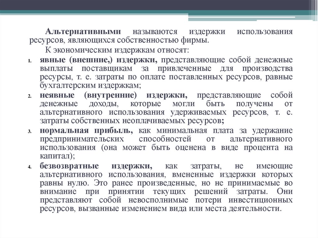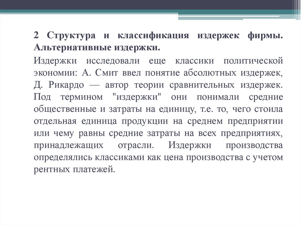 2 Структура и классификация издержек фирмы.Альтернативные издержки.