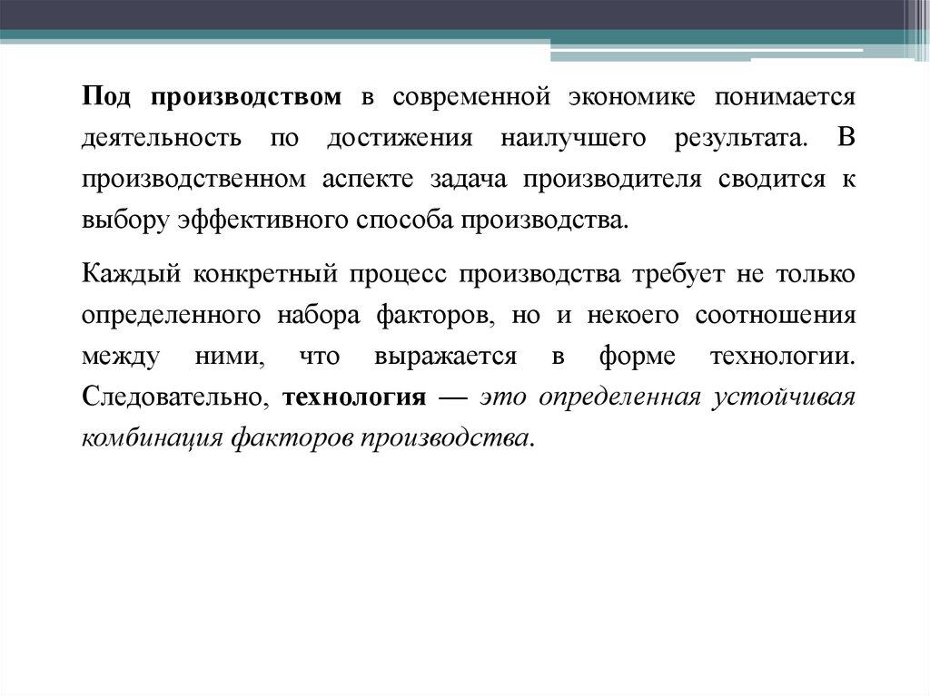 Под производством в современной экономике понимаетсядеятельность по достижения наилучшего результата. В