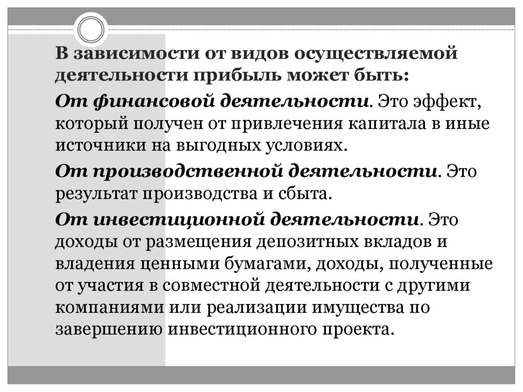 В зависимости от видов осуществляемойдеятельности прибыль может быть: