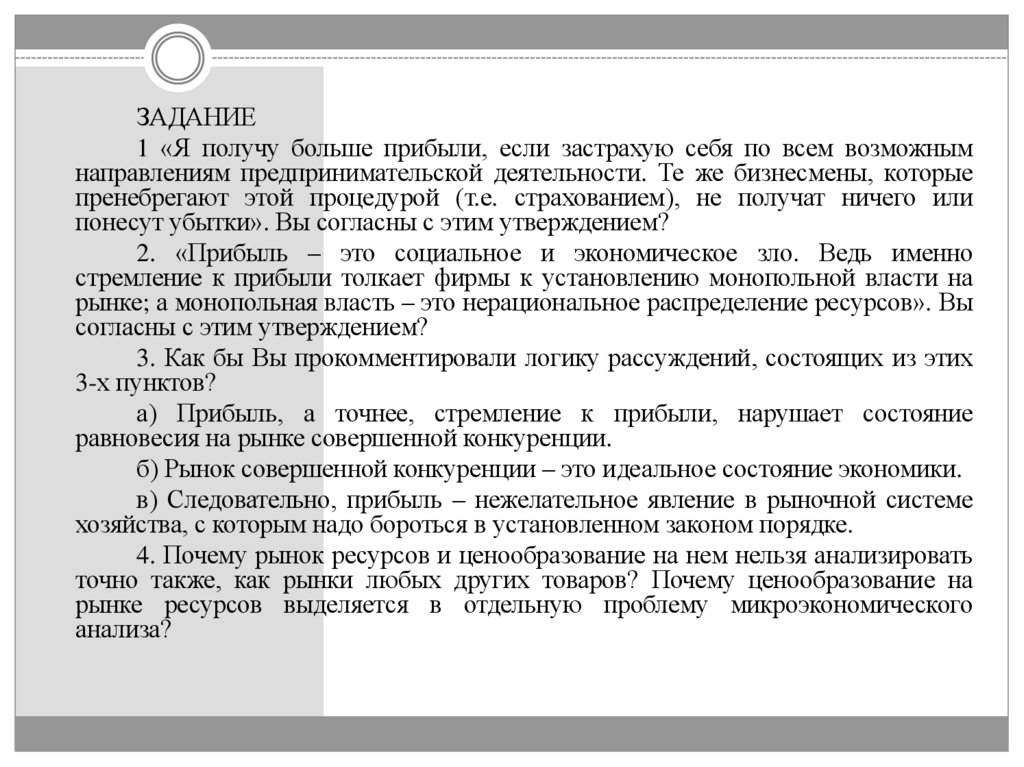 рынке ресурсов выделяется в отдельную проблему микроэкономического