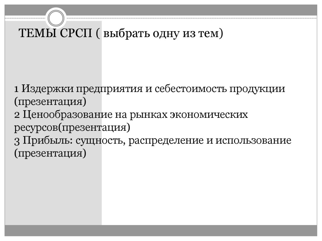 ТЕМЫ СРСП ( выбрать одну из тем)1 Издержки предприятия и себестоимость продукции