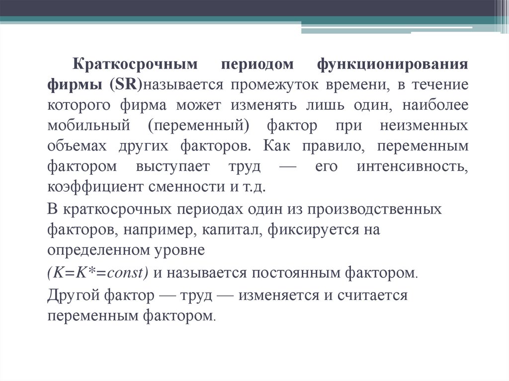 Краткосрочным периодом функционированияфирмы (SR)называется промежуток времени, в течение