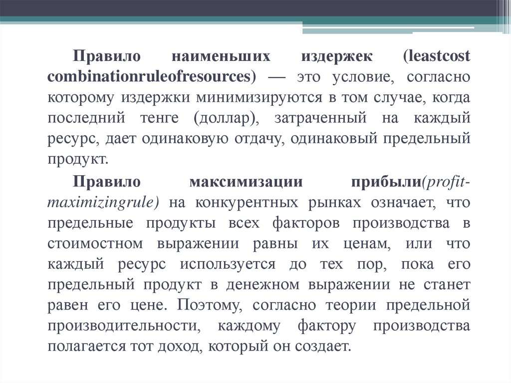 ресурс, дает одинаковую отдачу, одинаковый предельный