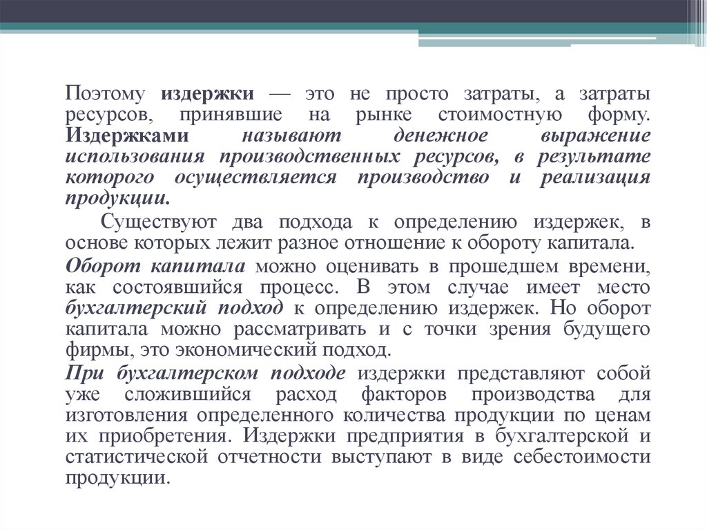 затратами фирмы на ее производство. Но для фирмы важна экономическая