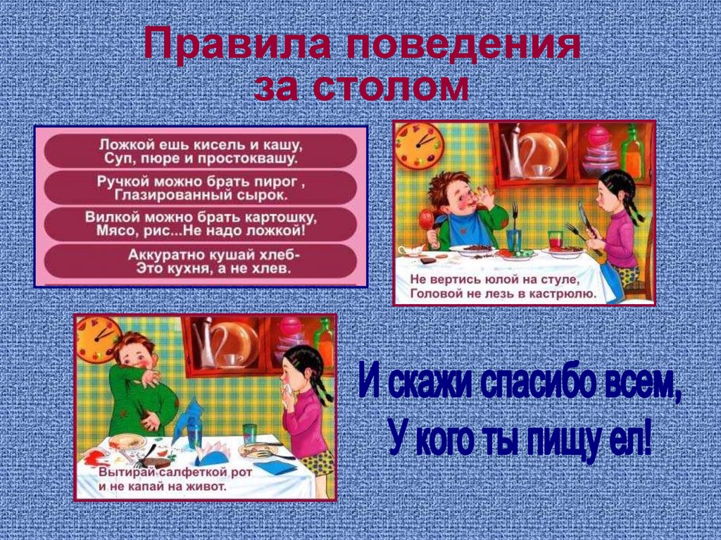 Есть и пить бесшумно, жевать с закрытым ртом.