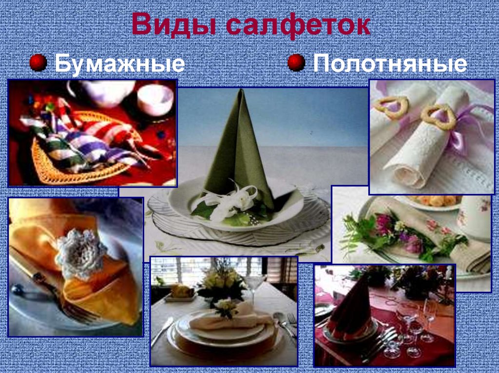Виды салфеток