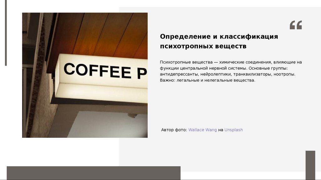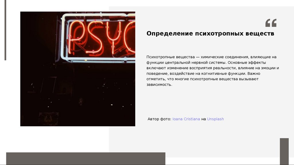 Спасибо за внимание!Спасибо за внимание. В этой презентации мы рассмотрели историю и классификацию психотропных веществ, их