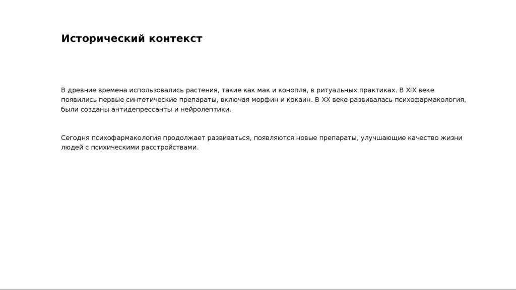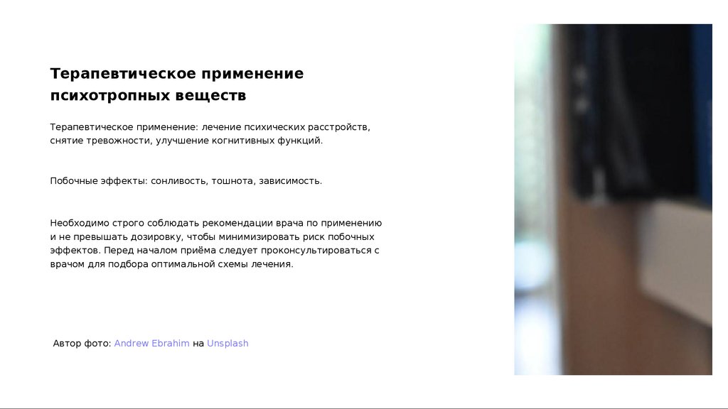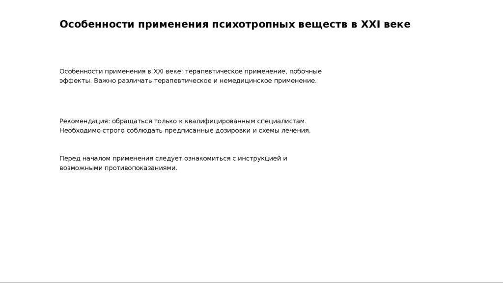 Особенности применения психотропных веществ в XXI векеОсобенности применения в XXI веке: терапевтическое применение, побочные